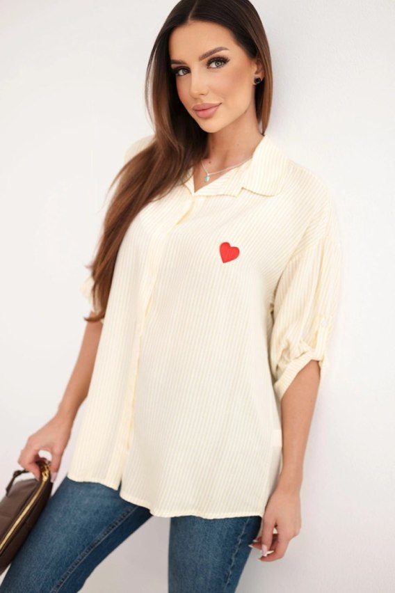 Koszula damska bawełniana w paski z haftowanym sercem żółta