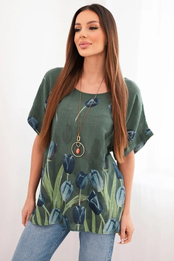 Koszula damska bawełniana z kwiatowym wzorem ciemne khaki