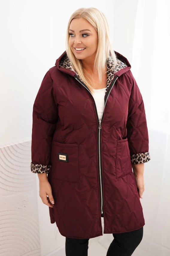 Kurtka damska pikowana Plus Size z podszewką w panterkę i kapturem bordowa