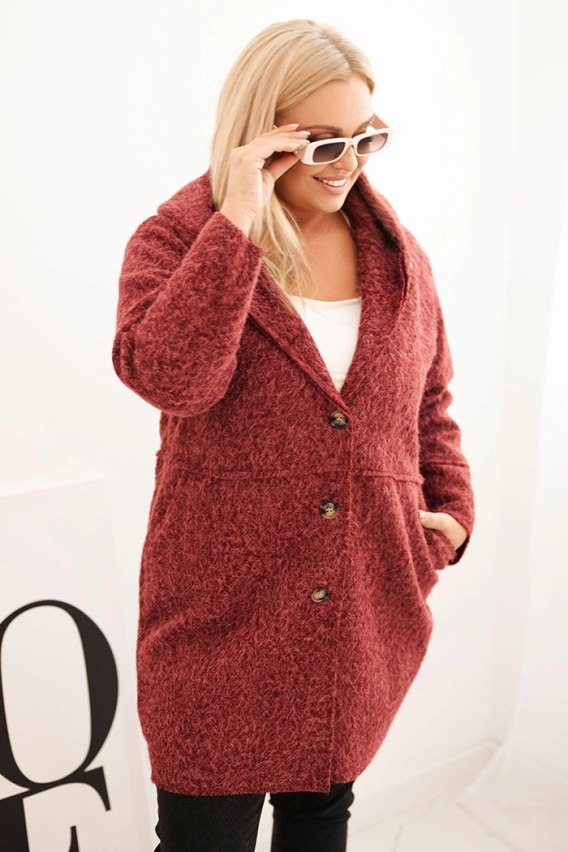 Płaszcz damski Plus Size z kapturem i kieszeniami bordowy