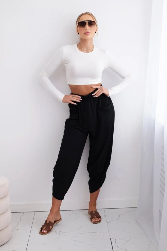 Spodnie z szeroką nogawką i kieszeniami czarne
