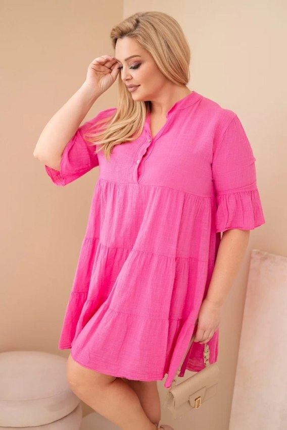 Sukienka damska bawełniana Plus Size z falbanami różowa