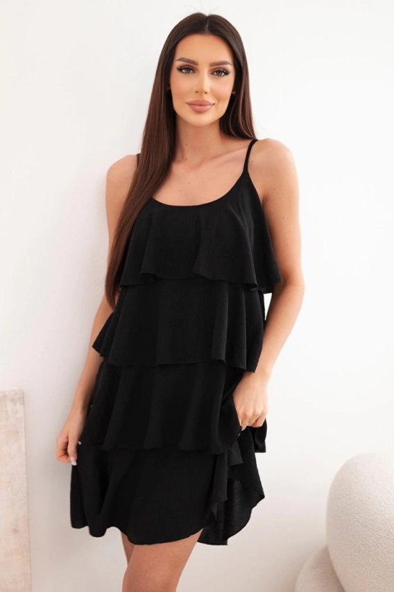 Sukienka damska na ramiączkach z falbanami mini czarna