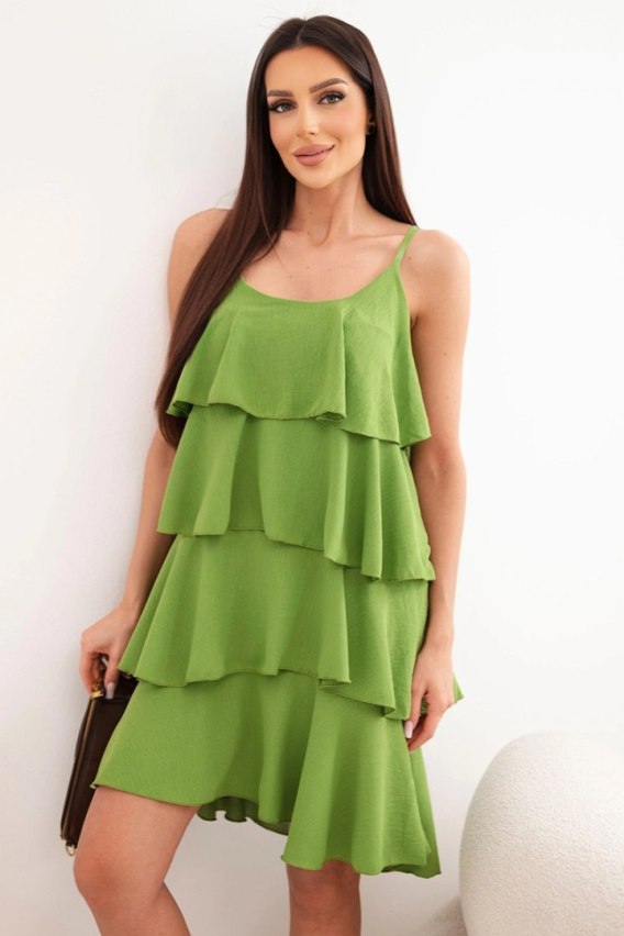 Sukienka damska na ramiączkach z falbanami mini oliwkowa