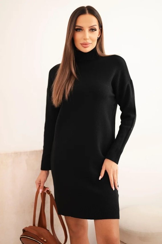 Sukienka damska swetrowa z golfem i kieszenią czarna