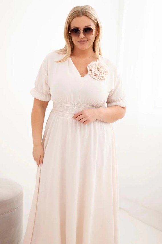 Sukienka damska wiskozowa Plus Size z dekoltem V i marszczoną talią jasno beżowa