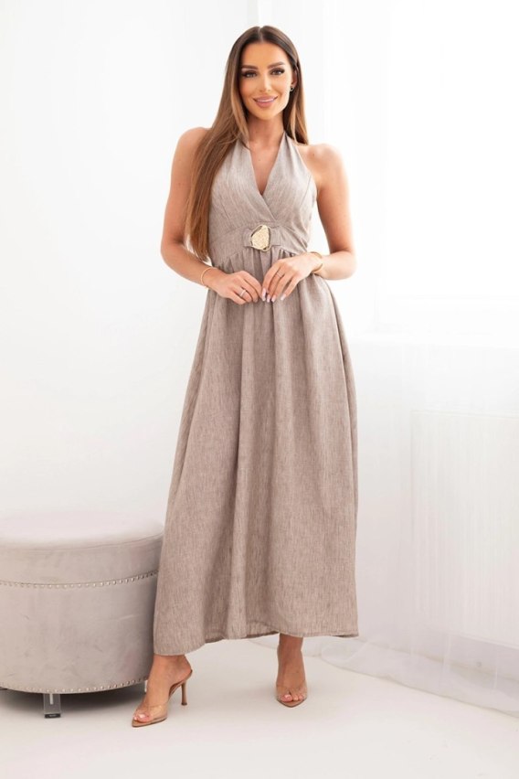 Sukienka damska wiskozowa maxi wiązana na szyi z ozdobną klamrą fango