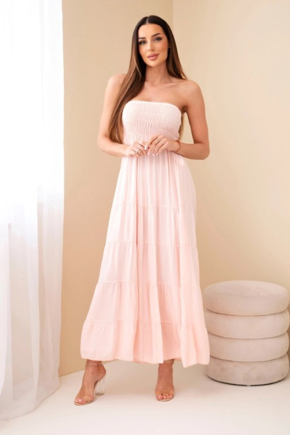 Sukienka damska wiskozowa z elastyczną górą pudrowy róż