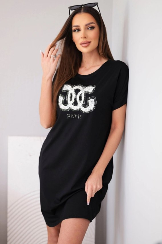 Sukienka damska wiskozowa z krótkim rękawem i ozdobnym nadrukiem czarna