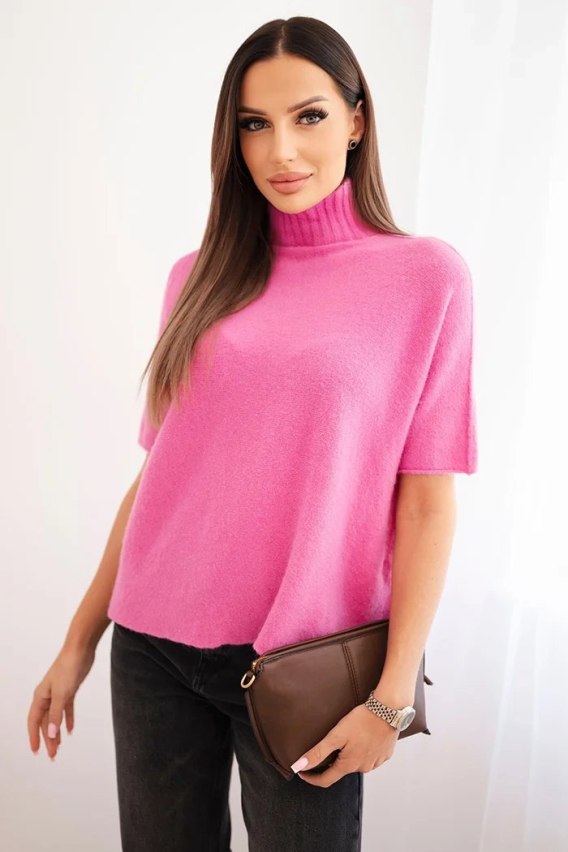 Sweter damski z krótkim rękawem o luźnym kroju różowy