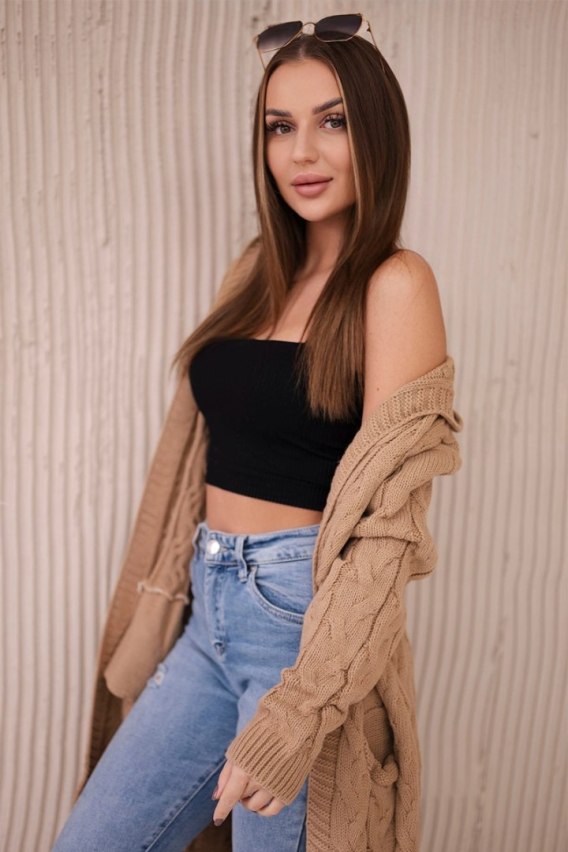 Sweter z kapturem i kieszeniami camelowy